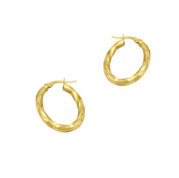 14 καράτια χρυσά κρικάκια, στριφτό οβάλ σχέδιο, μεγέθους 2,8cm και βάρους 1,84gr.