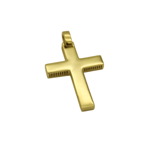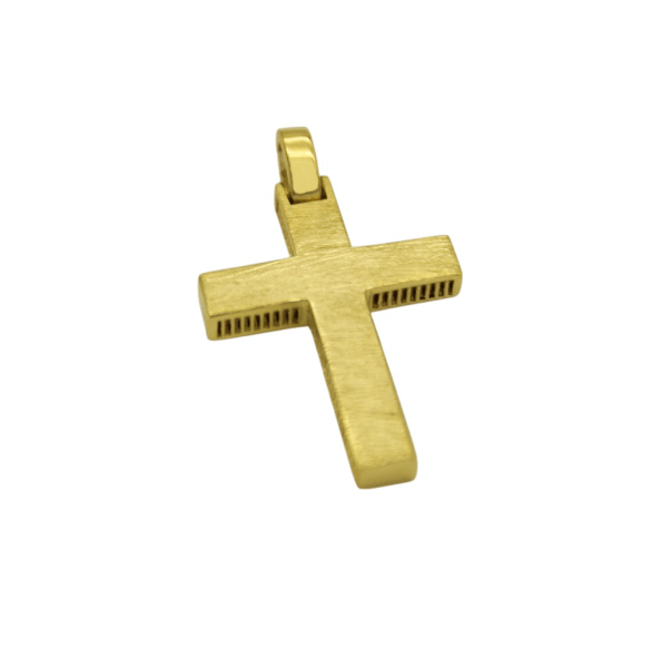 14 καράτια χρυσός ανδρικός Σταυρός με δύο όψεις, μία σαγρέ ματ και μία λουστρέ γυαλιστερή, βάρους 2,3gr.