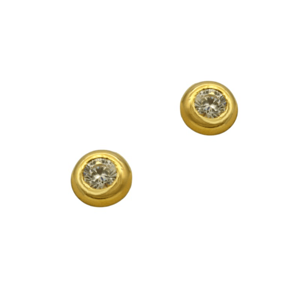 Καρφωτά στρογγυλά μονόπετρα σκουλαρίκια 9 καράτια χρυσά, με ζιρκόν και βάρος 1gr. Μπορούν να ταιριάξουν σετ με το δικό τους μενταγιόν.