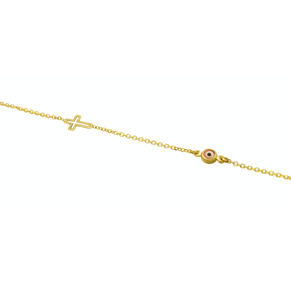 9Κ Χρυσό Βραχιόλι Σταυρός & Ματάκι – gb0203