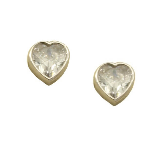 Earrings hearts, made of silver, with zircon stones.