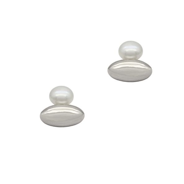 Ασημένια καρφωτά σκουλαρίκια, με μαργαριτάρια μεγέθους 6-6,5mm. Μπορούν να φορεθούν και να ταιριάξουν σετ με το αντίστοιχο μοτίφ.