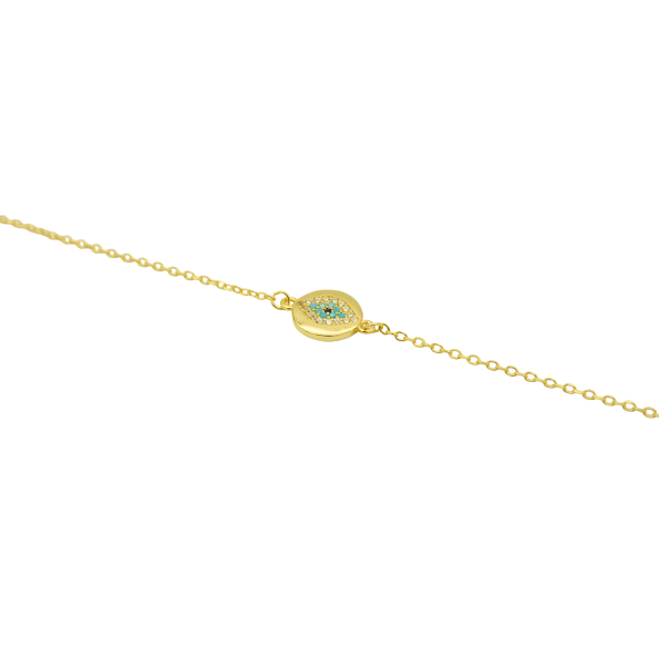 Ασημένιο βραχιόλι επίχρυσο, ματάκι με ζιρκόν.