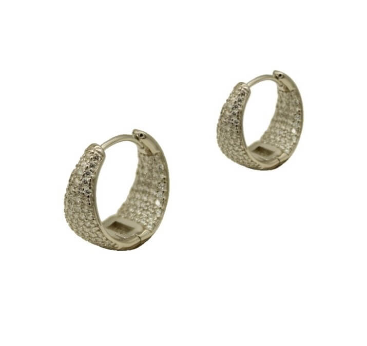 Silver hoops, with zircon stones and diameter 1,7cm.