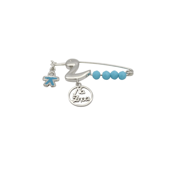 Ασημένια παραμάνα για νεογέννητο, πελαργός με κρεμαστό “Να Ζήσει” και αγοράκι.