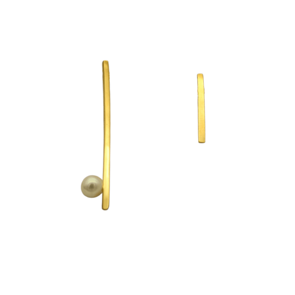 Ασύμμετρα καρφωτά σκουλαρίκια από ασήμι επιχρυσωμένο, μεγέθους 4,5cm και 2cm, με μεγάλο φυσικό μαργαριτάρι μεγέθους 5,5-6mm.