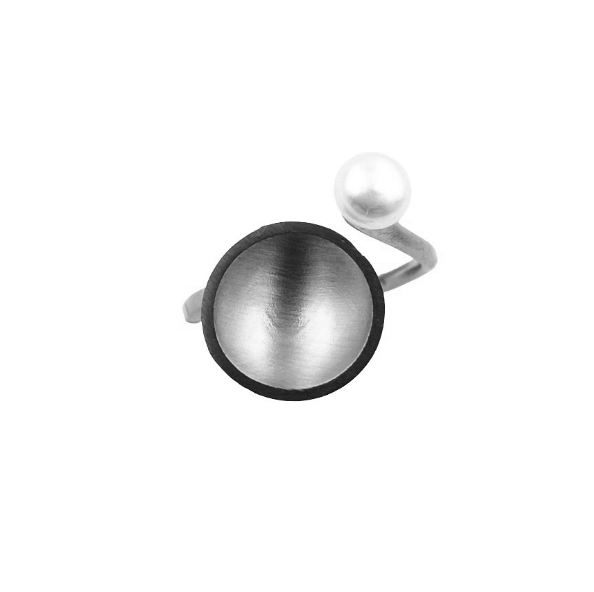 Δαχτυλίδι από ασήμι, ματ σχέδιο με μαύρο ρόδιο και μαργαριτάρι.
