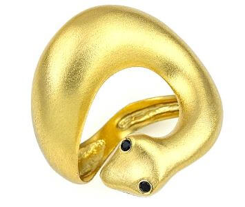 Δαχτυλίδι χειροποίητο από επιχρυσωμένο ασήμι, σε σχέδιο φιδιού με συνθετικά ζαφείρια στα μάτια. Όλα τα κοσμήματα περνούν από ποιοτικό έλεγχο, είναι υποαλλεργικά με εγγύηση ποιότητας κατασκευής.
