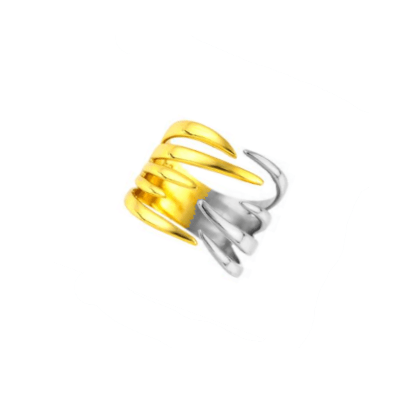 Δίχρωμο χειροποίητο δαχτυλίδι από ασήμι με επιχρύσωση, σχέδιο ανοικτό από πάνω που αγκαλιάζει το δάκτυλο.