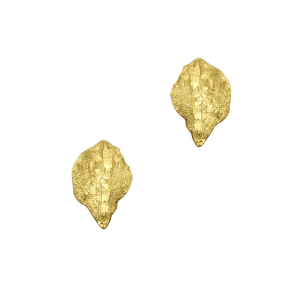 Επίχρυσα καρφωτά σκουλαρίκια φύλλα από ασήμι, με συνολικό βάρος 1,36gr και διαστάσεις σκουλαρικιού 1,9x1cm. Mπορούν να συνδυαστούν και να φορεθούν σετ με το δικό τους βραχιόλι, το δικό τους δαχτυλίδι και το αντίστοιχο κολιέ.