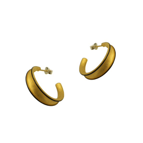 Δίχρωμα χειροποίητα καρφωτά σκουλαρίκια, ανοικτοί κρίκοι από ασήμι επιχρυσωμένο και ρόδιο, με διάμετρο 2,5cm.