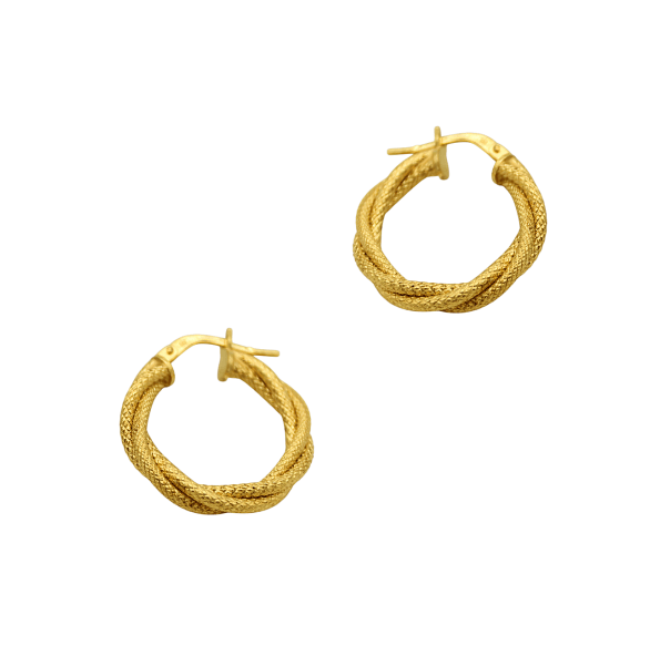 Επίχρυσα σκουλαρίκια κρίκοι από ασήμι, ανάγλυφο στριφτό σχέδιο με διάμετρο 2cm και βάρος 4,2gr.
