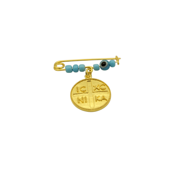 Παραμάνα από ασήμι επιχρυσωμένο, με κρεμαστό εικόνισμα “Ιησούς Χριστός Νικά” και ματάκι.