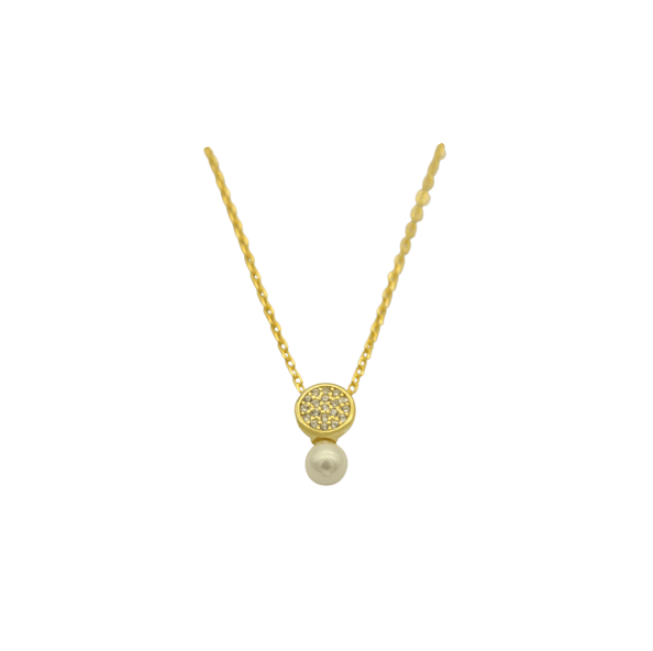 Επίχρυσο Κολιέ από Ασήμι Πέρλα & Ζιρκόν – zn2521y