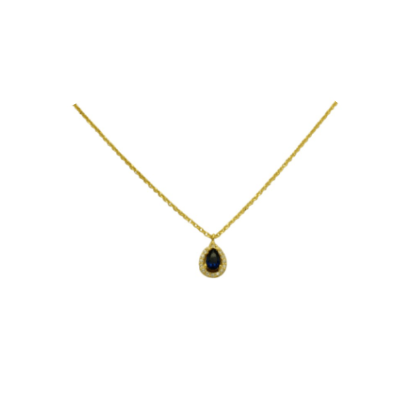 Επίχρυσο κολιέ, ροζέτα από ασήμι, με μπλε ζιρκόν σταγόνα. Μπορεί να φορεθεί σετ με το δικό του βραχιόλι.