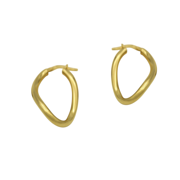Επίχρυσοι κρίκοι από ασήμι, στριφτό κυματιστό σχέδιο, με διαστάσεις 3,5x2cm και πάχος 3mm.