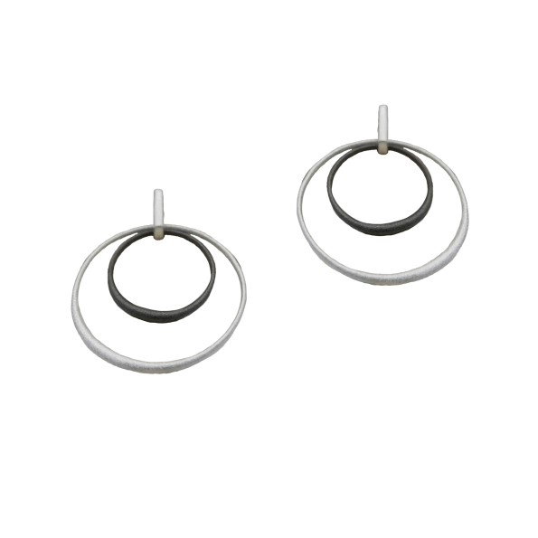 Χειροποίητα καρφωτά σκουλαρίκια από ασήμι και ρόδιο, διπλοί, ελεύθεροι κρεμαστοί κρίκοι, με διάμετρο 4,4cm.