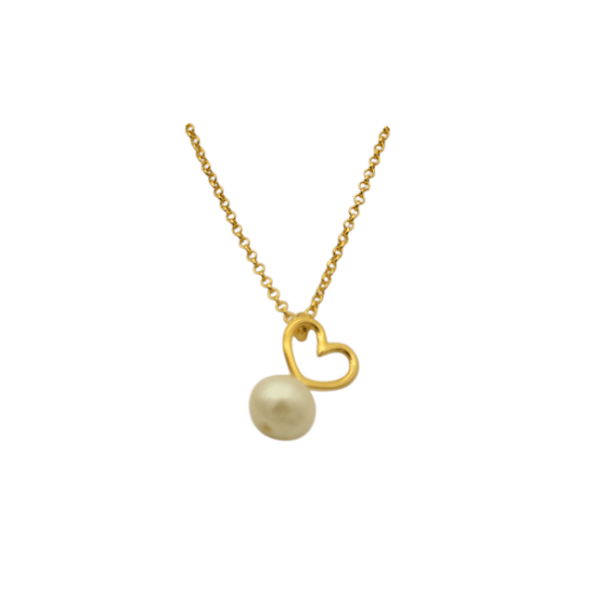 Κολιέ από ασήμι επιχρυσωμένο, καρδιά με μεγάλο φυσικό μαργαριτάρι μεγέθους 7-7,5mm. Μπορεί να ταιριάξει σετ με τα δικά του σκουλαρίκια.