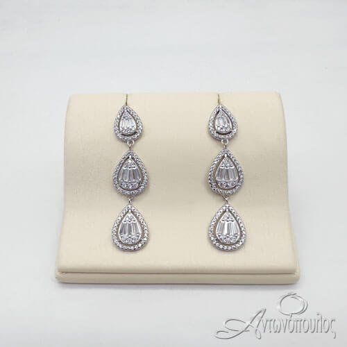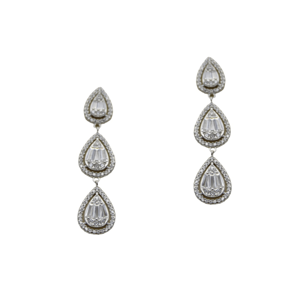 Καρφωτά σκουλαρίκια γάμου από ασήμι, κρεμαστές ζιρκόν σταγόνες, μεγέθους 4,5cm.