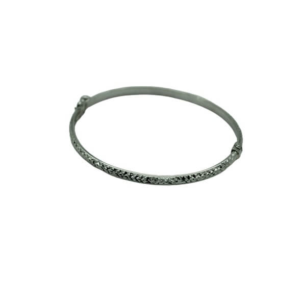 Λεπτή ασημένια χειροπέδα, διαμανταριστό σχέδιο εξωτερικά, με βάρος 4,1gr και πάχος 3,7mm.