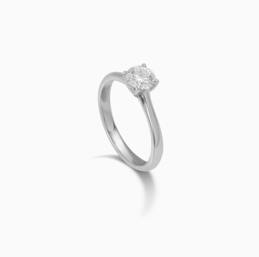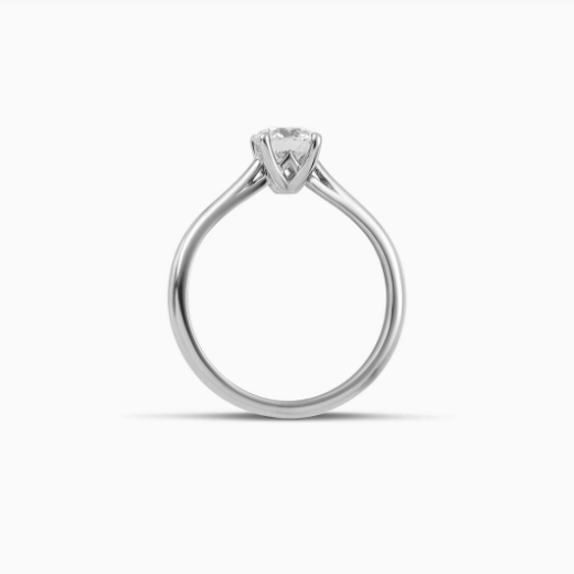 Μονόπετρο λευκόχρυσο δαχτυλίδι, με ένα lab-grown εργαστηριακό διαμάντι κοπής μπριγιάν βάρους 0,68ct, χρώματος F και καθαρότητας VS1, τοποθετημένο σε βάση με τέσσερα δόντια.
