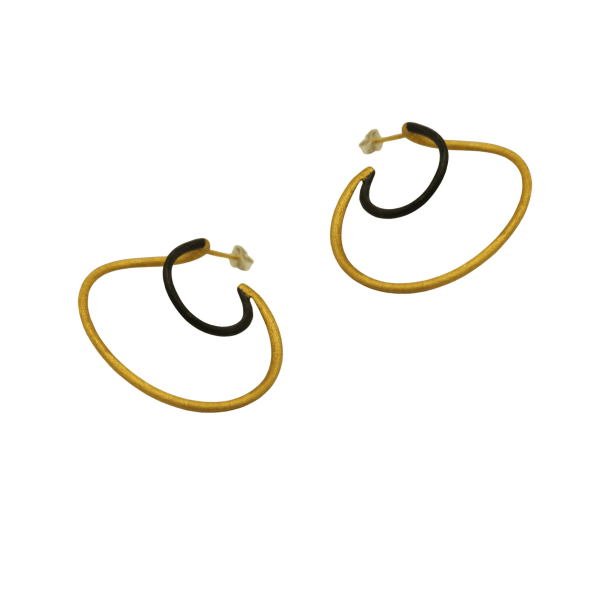 Μεγάλα καρφωτά σκουλαρίκια, δίχρωμο χειροποίητο στριφτό σχέδιο, από ασήμι επιχρυσωμένο και ρόδιο, με διαστάσεις 4,5×3,5cm.