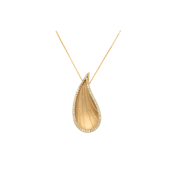 Ροζ χρυσό κολιέ 14 καράτια, σε σχήμα σταγόνας, με σειρά ζιρκόν περιμετρικά και βάρος 3,2gr.
