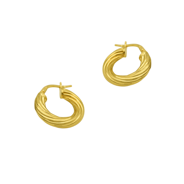Στριφτά μπουλ κρικάκια από ασήμι επιχρυσωμένο, με διάμετρο 2cm, πάχος 3,5mm και βάρος 2,2gr.