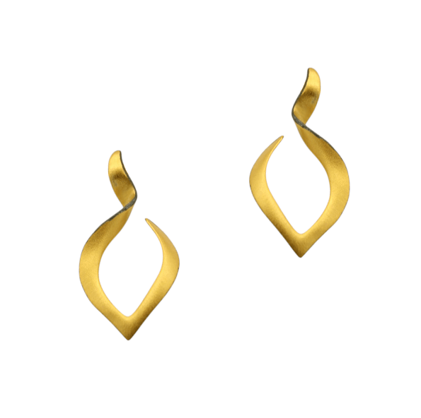 Στριφτά καρφωτά σκουλαρίκια φλόγες από ασήμι επιχρυσωμένο, με μαύρο ρόδιο περιμετρικά και διαστάσεις 3,5×1,8cm.