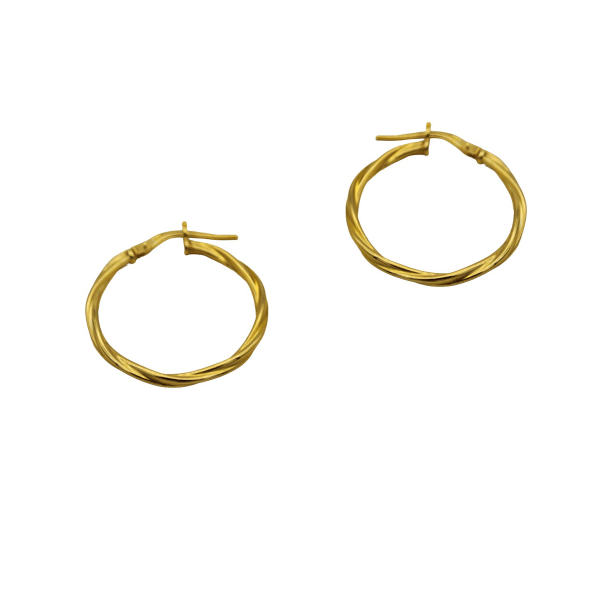 Στριφτοί λεπτοί κρίκοι από ασήμι επιχρυσωμένο,με διάμετρο 2,5cm και πάχος 1,6mm.