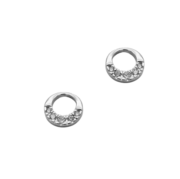 Στρογγυλά καρφωτά σκουλαρίκια από ασήμι και ζιρκόν, με διάμετρο 0,8cm.